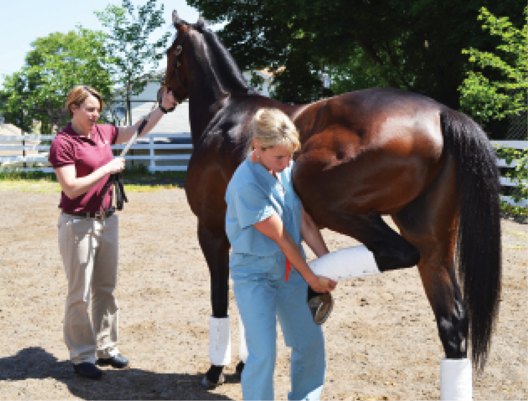 Flexion Test January 8, 2016January 8, 2016 Cornell Alumni Magazine Previous Next A leg up: Veterinarian Lisa Fortier, PhD ’99, performs a flexion test, which helps assess a horse’s gait.